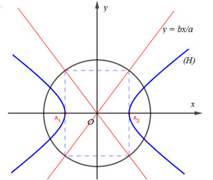 Lập phương trình chính tắc của hypebol (H) biết (H) có đỉnh \({A_2}(3;0)\) và đường tròn ngoại tiếp hình chữ nhật cơ sở là: \((C):\,{x^2} + {y^2} = 16\).