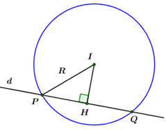 \( \Rightarrow PQ = 2IP = 2\sqrt {{R^2} - I{H^2}} \)