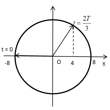 Tại thời điểm \(t = \frac{8}{3}\,\,s\), ta có: \(t = \frac{{8T}}{3} = 2T + \frac{{2T}}{3}\)
