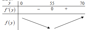 Xét hàm số \(f\left( y \right) = \dfrac{{\sqrt {{{\left( {70 - y} \right)}^2} + {{20}^2}} }}{{30}} + \dfrac{y}{{50}}\,\,\left( {0 < y < 70} \right)\) ta có: