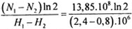 Mg ) là 2,4.106Bq; lúc t2 độ phóng xạ của mẫu là 8.105 Bq. Số hạt nhân đã phân rã trong khoảng thời gian từ t1 đến t2 là 13,85.108 hạt nhân. Chu kì bán rã của magie là: