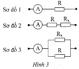 Gọi số chỉ ampe kế trong 3 sơ đồ 1,2,3 tương ứng là I1, I2, I3.