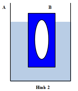 2) Khi cân bằng nhiệt thì nhiệt độ của nước và khối trụ B là t1 = 200C. Người ta đổ tiếp vào bình một lượng dầu có khối lượng m2, khối lượng D2 = 900kg/m3, nhiệt dung riêng c2,ở nhiệt độ t2 = 800C. Khi có cân bằng, đáy dưới khối trụ nằm ngay mặt phân cách giữa dầu và nước, khi đó nhiệt độ cân bằng của hệ là t = 300C. Biết nhiệt dung riêng của nước c = 4200 J/(kg.độ), của nhôm làm khối trụ B là c1 = 880J/(kg.độ).