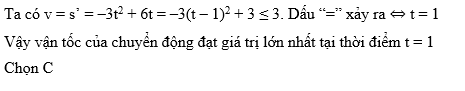 Một chất điểm chuyển động theo quy luật s = –t3 + 3t2. Khi đó vận tốc v(m/s) của chuyển động đạt giá trị lớn nhất tại thời điểm t (giây) bằng: