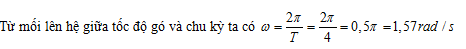 Một chất điểm chuyển động tròn đều với chu kì T= 4s. Tốc độ góc có giá trị nào sao đây.