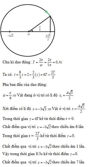 Một chất điểm dao động điều hòa theo phương trình x = 6 cos (5πt + π/6) (x tính bằng cm và t tính bằng giây). Trong 8/3s đầu tiên từ thời điểm t = 0, chất điểm đi qua vị trí có li độ x = -3 cm theo chiều âm.