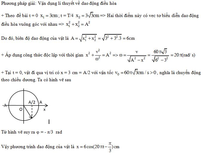 Một chất điểm dao động điều hòa với biên độ A, chu kì T. Tại thời điểm đầu t = 0 vật có li độ 3 cm thì tốc độ là . Tại thời điểm t = T/4 thì vật có li độ . Phương trình dao động của vật là