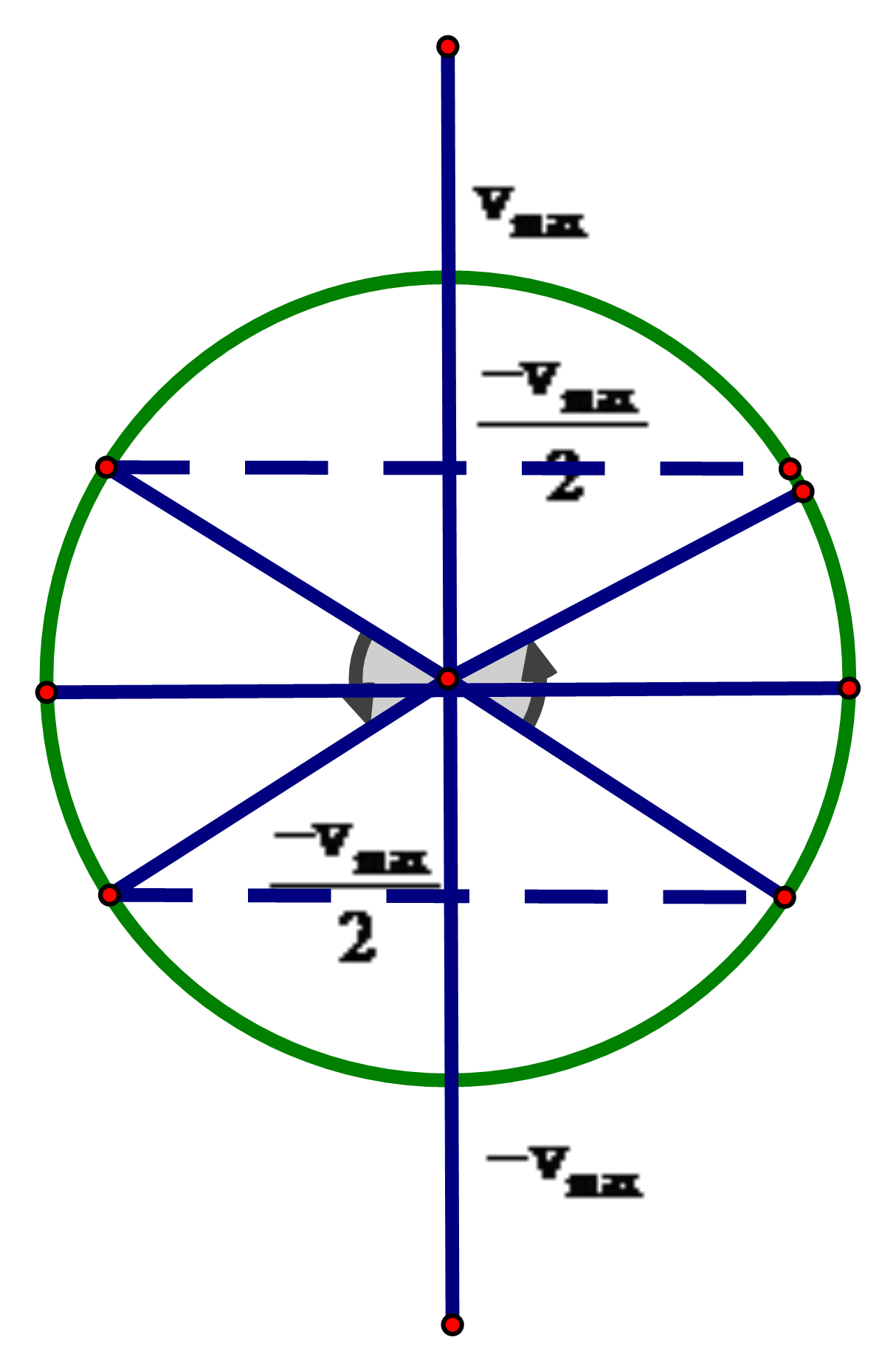 \({v_{tb}} = {{4A} \over T} = {{4\omega A} \over {2\pi }} = {{2{v_{\max }}} \over \pi }\)