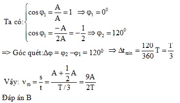 Một chất điểm dao động điều hòa với chu kì T. Trong khoảng thời gian ngắn nhất khi đi từ vị trí biên có li độ x = A đến vị trí x = , chất điểm có tốc độ trung bình là