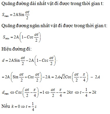 Một chất điểm dao động điều hòa với phương trình x = Acos2πt (t đo bằng s). Biết hiệu giữa quãng đường lớn nhất và nhỏ nhất mà chất điểm đi được cùng trong một khoảng thời gian ∆t  đạt cực đại. Khoảng thời gian  ∆t bằng: