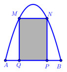 Một chiếc cổng có hình dạng là một Parabol có khoảng cách giữa hai chân cổng là \(AB = 8m.\) Người ta treo một tấm phông hình chữ nhật có hai đỉnh \(M,N\) nằm trên Parabol và hai đỉnh \(P,Q\) nằm trên mặt đất (như hình vẽ). Ở phần phía ngoài phông (phần không tô đen) người ta mua hoa để trang trí với chi phí cho \(1{m^2}\) cần số tiền mua hoa là \(200.000\) đồng cho \(1{m^2}.\) Biết \(MN = 4m;MQ = 6m.\) Hỏi số tiền dùng để mua hoa trang trí chiếc cổng gần với số tiền nào sau đây?