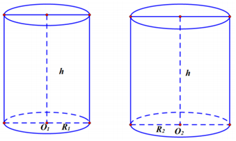 Ta có: \(\left\{ \begin{array}{l}{V_1} = \pi R_1^2h = \pi h\\{V_1} = \pi R_2^2h = \pi .1,{2^2}h = \frac{{36\pi }}{{25}}h\end{array} \right..\)
