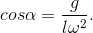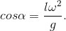 Một con lắc có chiều dài l, đầu trên được buộc vào đỉnh một thanh thẳng đứng. Con lắc quay xung quanh trục thằng đứng với vận tốc góc ω. Để xác định góc α hợp bởi dây treo và trục thẳng đứng, ta chọn hệ thức nào?