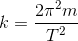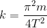 Một con lắc lò xo gồm lò xo có độ cứng k treo quả nặng có khối lượng m. Hệ dao động với chu kỳ T. Độ cứng của lò xo là