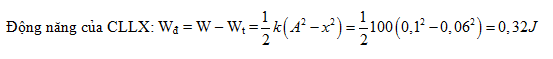 Một con lắc lò xo gồm viên bi nhỏ và lò xo nhẹ có độ cứng 100 N/m, dao động điều hòa với biên độ 0,1 m. Mốc thế năng ở vị trí cân bằng. Khi viên bi cách vị trí cân bằng 6 cm thì động năng của con lắc bằng