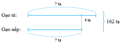 Số gạo nếp còn lại là: \(\left( {162 - 4} \right):2 = 79\) (tạ)
