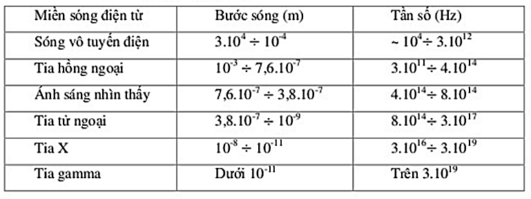 Một dải sóng điện từ trong chân không có tần số từ \(4,{0.10^{14}}\,\,Hz\) đến \(7,{5.10^{14}}\,\,Hz\). Biết tốc độ ánh sáng trong chân không \(c = {3.10^8}\,\,m/s\). Dải sóng trên thuộc vùng nào trong thang sóng điện từ?