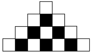 Một hình bậc thang được tạo thành từ các ô vuông đen và trắng xen kẽ trong mỗi hàng. Hàng 1 đến hàng 4 được hiển thị trong hình. Tất cả các hàng đều bắt đầu và kết thúc bằng 1 ô vuông màu trắng. Hỏi có bao nhiêu ô vuông đen ở hàng thứ 37?