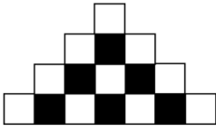 Một hình bậc thang được tạo thành từ các ô vuông đen và trắng xen kẽ trong mỗi hàng. Hàng 1 đến hàng 4 được hiển thị trong hình. Tất cả các hàng đều bắt đầu và kết thúc bằng 1 ô vuông màu trắng. Hỏi có bao nhiêu ô vuông đen ở hàng thứ 37?