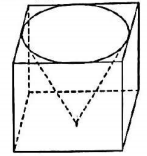 Một khối lập phương có cạnh 1 m chứa đầy nước. Đặt vào trong khối đó 1 khối nón có đỉnh trùng với tâm của một mặt của lập phương, đáy của khối nón tiếp xúc với các cạnh của mặt đối diện. Tính tỉ số thể tích lượng nước trào ra ngoài và thể tích lượng nước ban đầu của khối lập phương.