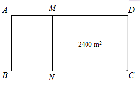 Diện tích khu chuồng trại ABNM là \({{S}_{ABNM}}=\frac{{{S}_{MNCD}}}{3}=800\left( {{m}^{2}} \right)\)