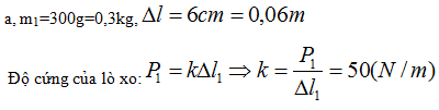 Một lò xo khi treo vật m1 = 300 g sẽ dãn ra 1 đoạn delta l = 6 cm