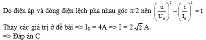 Một mạch điện xoay chiều có độ lệch pha giữa điện áp và cường độ dòng điện chạy trong mạch là π/2. Tại một thời điểm t, cường độ dòng điện trong mạch có giá trị 2√3 A thì điện áp giữa hai đầu mạch là 50 √2 V. Biết điện áp hiệu dụng của mạch là 100 V. Tính giá trị hiệu dụng cường độ dòng điện trong mạch.