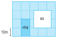 Quan sát hình vẽ ta thấy, mảnh đất làm nhà hình chữ nhật có chiều dài \(20m\), chiều rộng \(10m\).