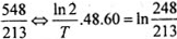 Ta có: H = eH0e-λt = 548, H' = eH0e-λ(t + 48.60) = 213