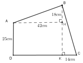 Diện tích miếng bìa \(ABCD\) bằng tổng diện tích của hai miếng bìa hình tam giác \(ABH,\,\,BKC\) và miếng bìa hình chữ nhật \(AHKD\).