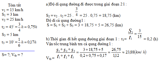 b) Tính vận tốc trung bình trên cả quãng đường .