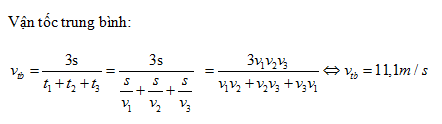 Một ô tô chuyển động trên chặng đường gồm ba đoạn liên tiếp cùng chiều dài. Vận tốc của xe trên mỗi đoạn là V1 = 12m/s; v2 = 8m/s; v3 = 16m/s. Tính vận tốc trung bình của ôtô cả chặng đường.