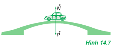 Khi ô tô chuyển động đến điểm cao nhất, các lực tác dụng lên xe được biểu diễn như hình vẽ: