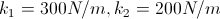 Theo định luật Hooke, lực đàn hồi xuất hiện ở hai lò xo là