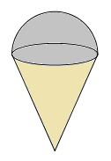 Một que kem ốc quế gồm hai phần : phần kem có dạng hình cầu, phần ốc quế có dạng hình nón. Giả sử hình cầu và hình nón cùng có bán kính bằng \(3\,cm,\) chiều cao hình nón là \(9cm.\) Thể tích của que kem (bao gồm cả phần không gian bên trong ốc quế không chứa kem) có giá trị bằng :