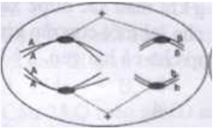 Một sinh vật lưỡng bội có kiểu gen AABb. Hai gen này nằm trên các nhiễm sắc thể khác nhau, được minh họa trong một tế bào của sinh vật này như thể hiện ở hình dưới đây. Tế bào này đang trải qua giai đoạn nào của chu kỳ tế bào (kí tự + là các cực của tế bào)?