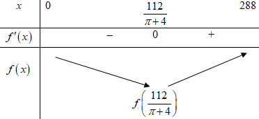 Cho \(f'\left( x \right) = 0 \Leftrightarrow x = \dfrac{{112}}{{\pi + 4}}\).