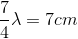 Một sợi dây đàn hồi AB được treo lơ lửng, đầu A gắn vào một nhánh của âm thoa đang dao động với tần số 100Hz. Khoảng cách từ B đến nút dao động thứ 4 kể từ B là 7cm. Sóng dừng trên dây có bước sóng là