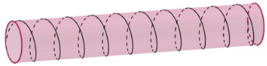 Một sợi dây (không co giãn) được quấn đối xứng đúng 10 vòng quanh một ống trụ tròn đều có bán kính \(R = \dfrac{2}{\pi }\,\,cm\) (như hình vẽ).