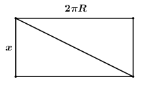 Trải phẳng mỗi ống trụ nhỏ ta được 1 hình chữ nhật có hai kích thước là \(x\) và \(2\pi .R = 2\pi .\dfrac{2}{\pi } = 4\,\,\left( {cm} \right)\).