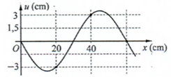 Một sóng cơ hình sin truyền trên một sợi dây đàn hồi dọc theo trục Ox. Hình bên là hình dạng của một đoạn dây tại một thời điểm. Biên độ của sóng có giá trị gần nhất với giá trị nào sau đây?