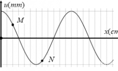Một sóng ngang hình sin truyền trên một sợi dây dài theo chiều dương trục Ox. Hình vẽ bên là hình dạng của một đoạn dây tại một thời điểm xác định. Trong quá trình lan truyền sóng, hai phần tử M và N lệch pha nhâu một góc là.