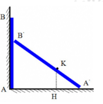 Một thanh cứng, mảnh AB có chiều dài \(l = 2m\) dựng đứng sát bức tường thẳng đứng như hình.
