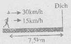 Một vận động viên maratông đang chạy đều với vận tốc 15 (km/h). Khi còn cách đích 7,5 (km) thì có một con chim bay vượt qua người đấy đến đích với vận tốc 30 (km/h).