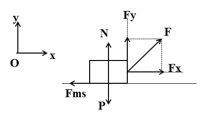 Áp dụng định luật 2 Niu tơn: \(\vec P + \vec N + \vec F + \overrightarrow {{F_{ms}}} = m\vec a\)
