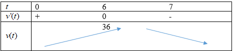 Một vật chuyển động theo quy luật \(s=-\frac{1}{3}{{t}^{3}}+6{{t}^{2}}\) với t (giây) là khoảng thời gian tính từ khi vật bắt đầu chuyển động và s (mét) là quãng đường vật di chuyển được trong khoảng thời gian đó. Hỏi trong khoảng thời gian 7 giây, kể từ khi vật bắt đầu chuyển động, vận tốc lớn nhất của vật đạt được là bao nhiêu?