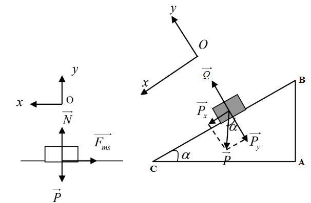 \(\overrightarrow P + \overrightarrow N + \overrightarrow {{F_{ms}}} = m.\overrightarrow a \) (*)