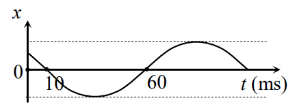 \(\frac{T}{2} = 60 - 10 \Rightarrow T = 100\,\,\left( {ms} \right) = 0,1\,\,\left( s \right)\)