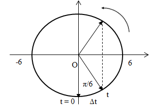 Góc quét: α = π/6 (rad) \( \Rightarrow \Delta t = {\alpha \over \omega } = {{{\pi \over 6}} \over \pi } = {1 \over 6}s \Rightarrow t = 4 + {1 \over 6} = {{25} \over 6}s\)
