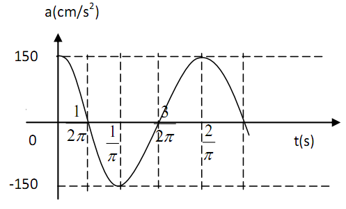 Một vật dao động điều hoà dọc theo trục x’ox xung quanh vị trí cân bằng O, có đồ thị gia tốc theo hình vẽ. Lấy π2=10.